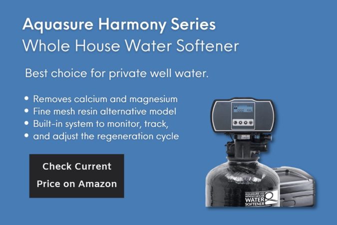 The Aquasure Harmony Series Water Softener is the best choice for private well water. But even with city water it’s a great option for larger homes and provides additional filtration. It also comes at a reasonable price for what’s offered.